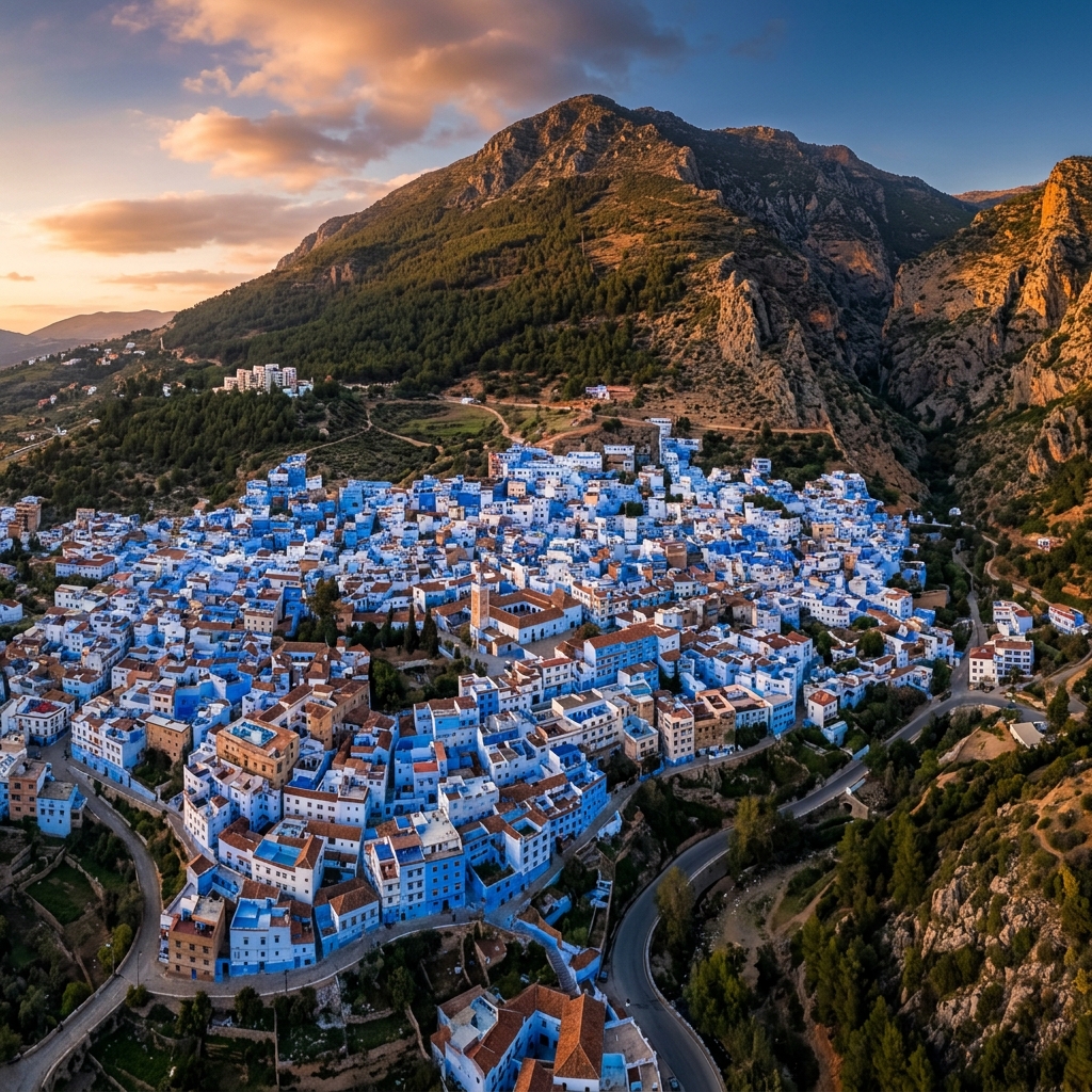 リフ山脈に抱かれた「青の都市」。インディゴとコバルトに染め上げられた路地は、まるで夢の中にいるような別世界。日本人旅行者が最も愛するモロッコの宝石。